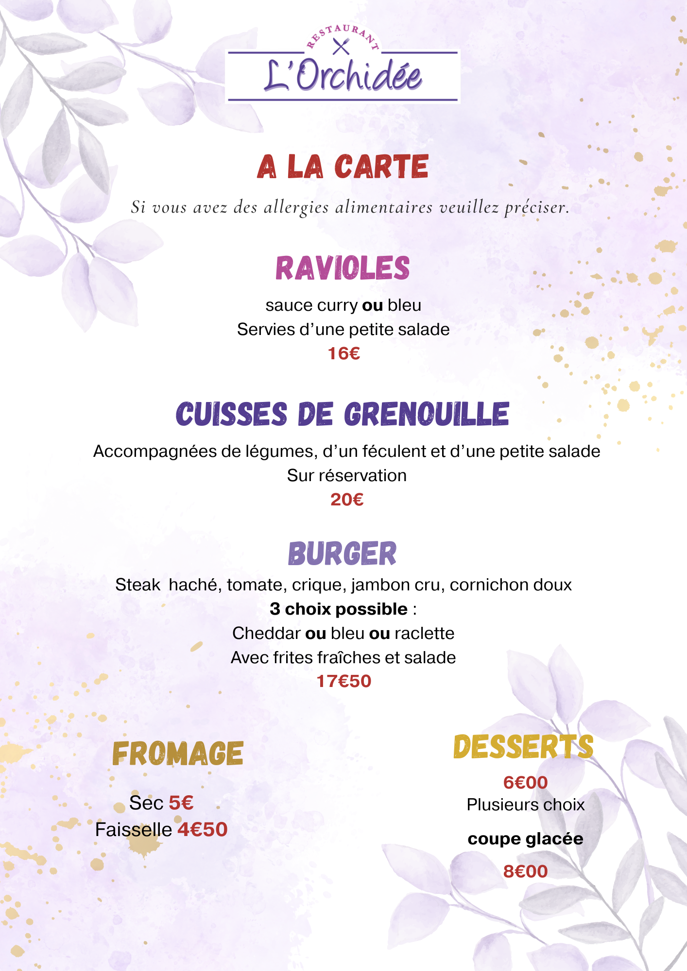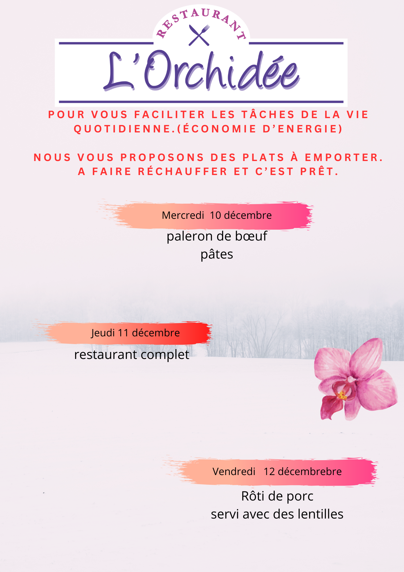 Nous vous proposons du mercredi midi au vendredi midi un menu du jour.